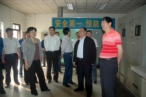 人大副主任崔丙亮(右二)、副市長郭茹(左二)一行在煤氣儲(chǔ)配站視察